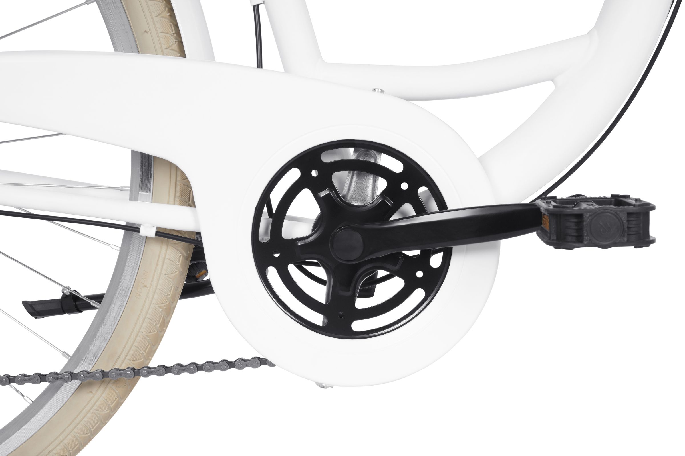 Rower posiada system oświetlenia LED z elementami odblaskowymi, co gwarantuje długotrwałe użytkowanie. Mocne światło jest widoczne z odległości co najmniej 100 metrów. Zasilane bateriami lampki LED zapewniają cichą i bezproblemową jazdę – proste i praktyczne rozwiązanie.