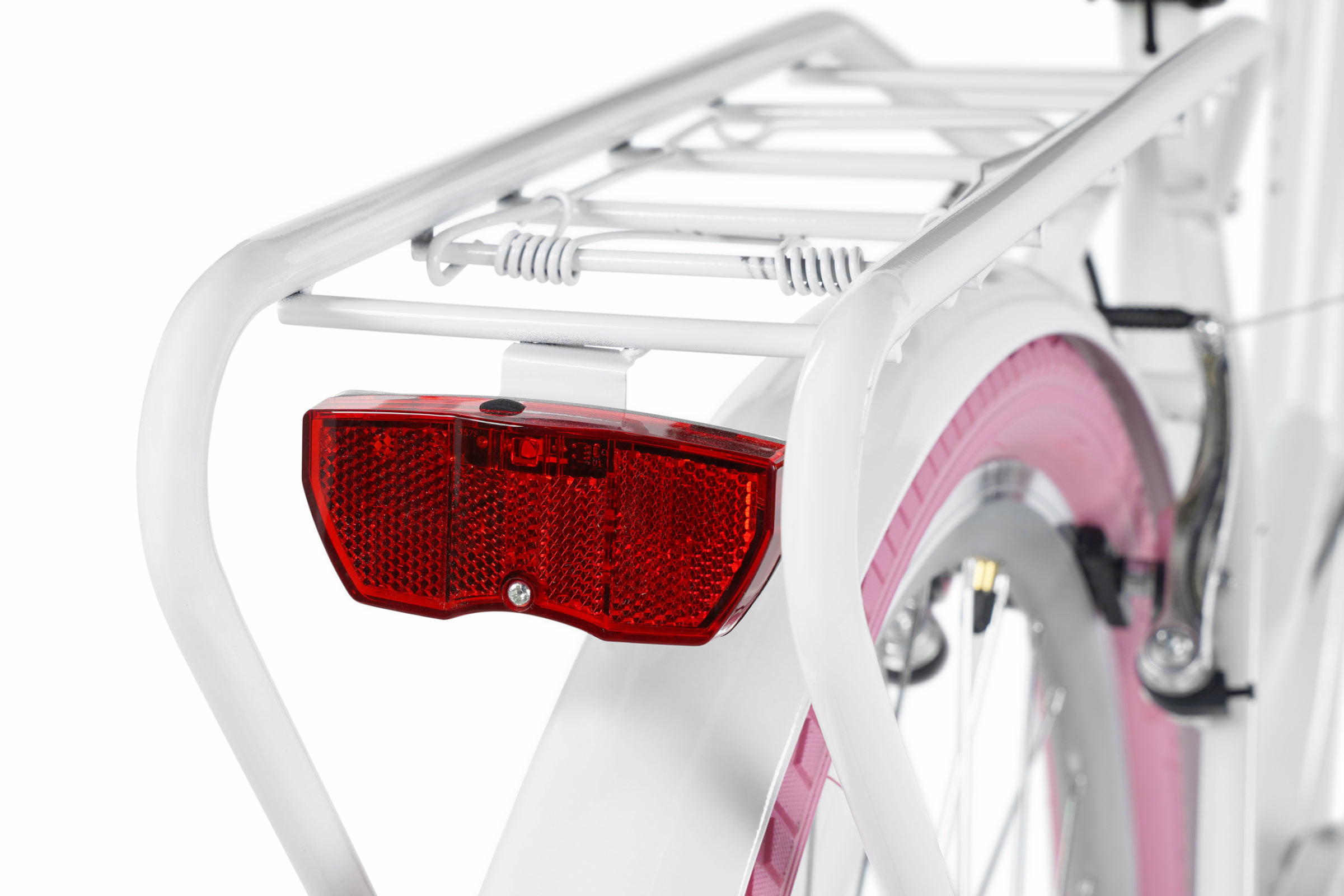 Rower wyposażono w system oświetlenia LED z elementami odblaskowymi, co zapewnia długotrwałe użytkowanie. Silne światło jest widoczne z odległości co najmniej 100 metrów. Zasilane bateriami lampki LED zapewniają cichą i bezproblemową jazdę – proste i praktyczne rozwiązanie.