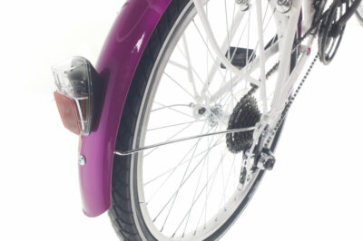 Rower ma błotniki, które chronią ubrania i ramę przed wodą, błotem i brudem w deszczowe dni.